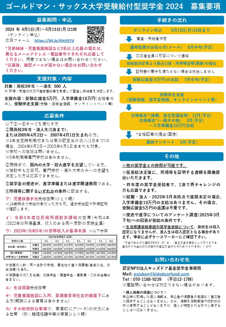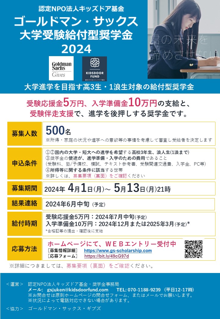 関連団体等からの告知・拡散もぜひお願いします。リーフレットはこちら(pdf・転載可)⇒2024GS奨学金_募集要項